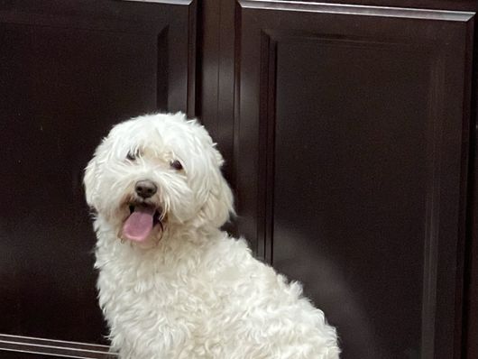 All white maltipoo, great temperament.