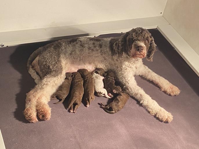 Candy is a female Lagotto Romagnolo. Carefully selected as a great representative of her breed, Kimberly decided to make her part of their program. Kimberly has passed Good Dog’s screening process, which involved a review of their breeding practices, environment, and the mental and physical health of their dogs.