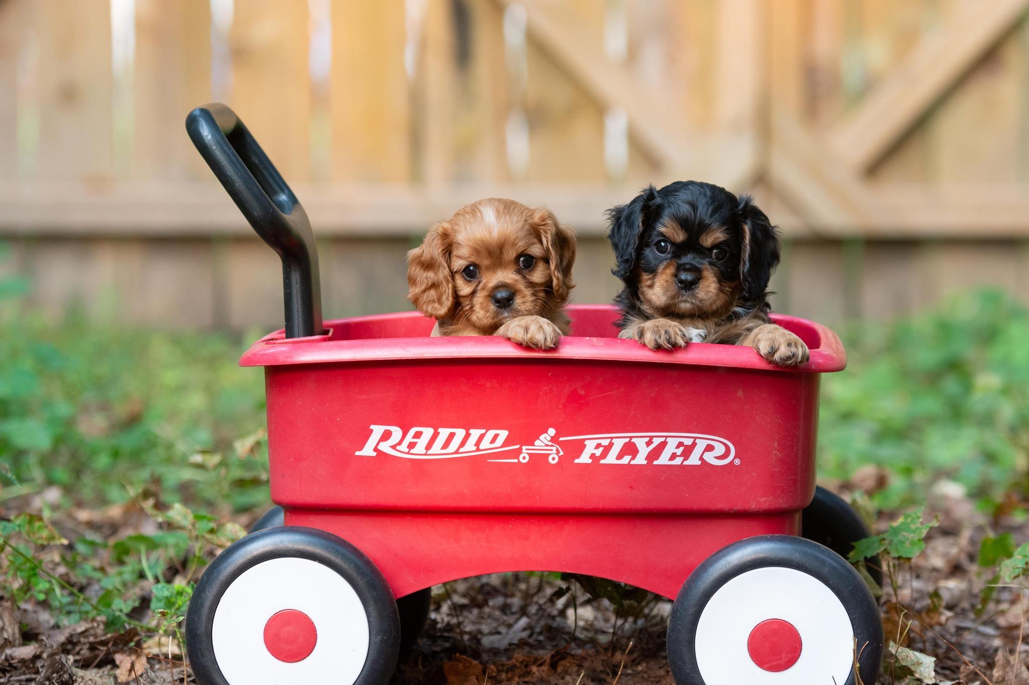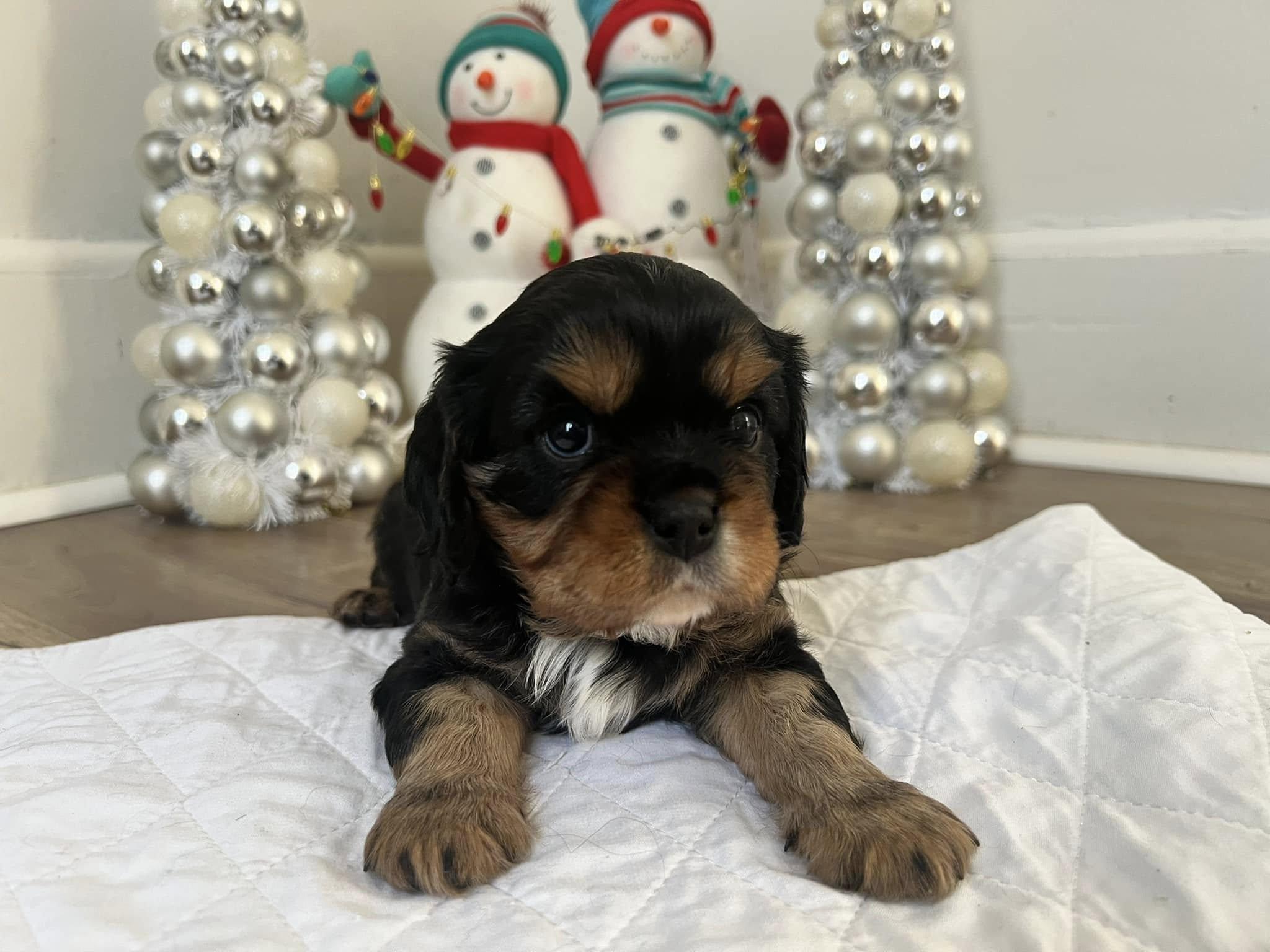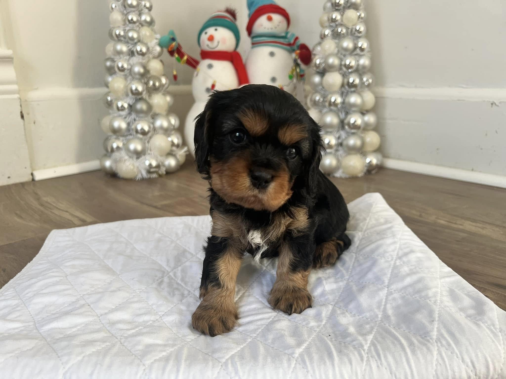 Our puppies include blenheim, ruby, tri-color, and black and tan. Colors will vary depending on the parent dogs.