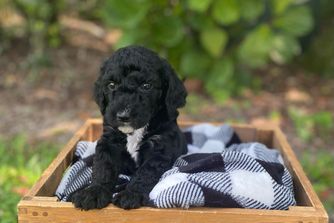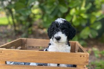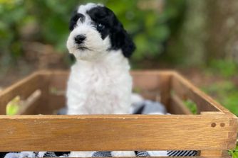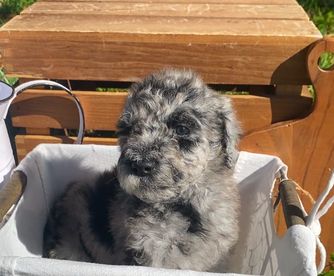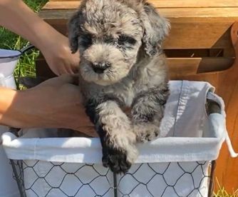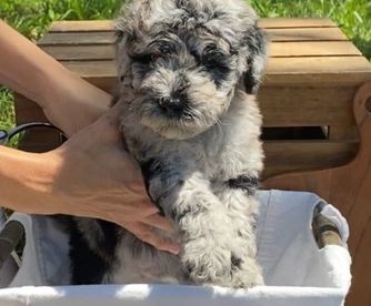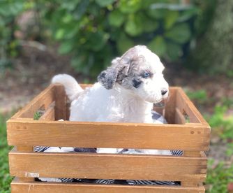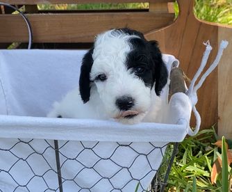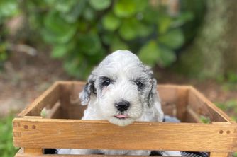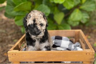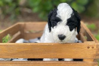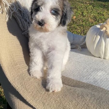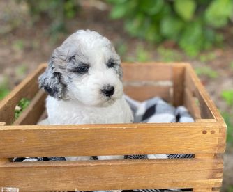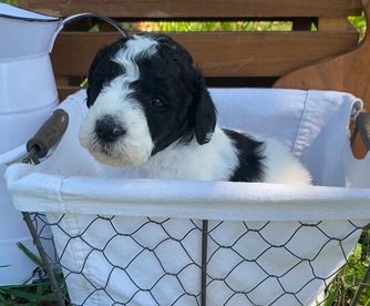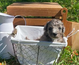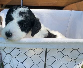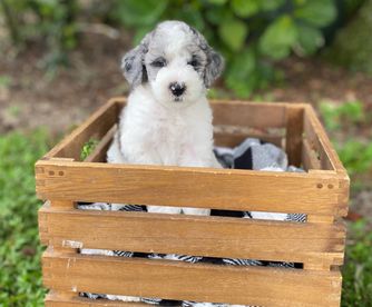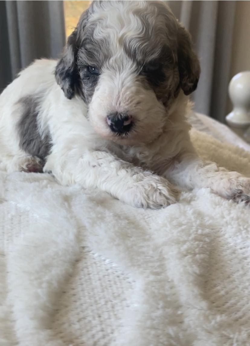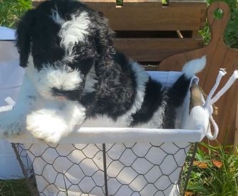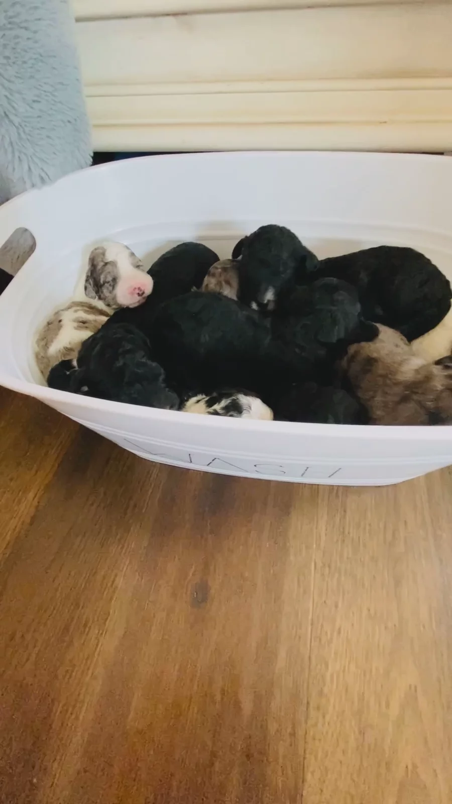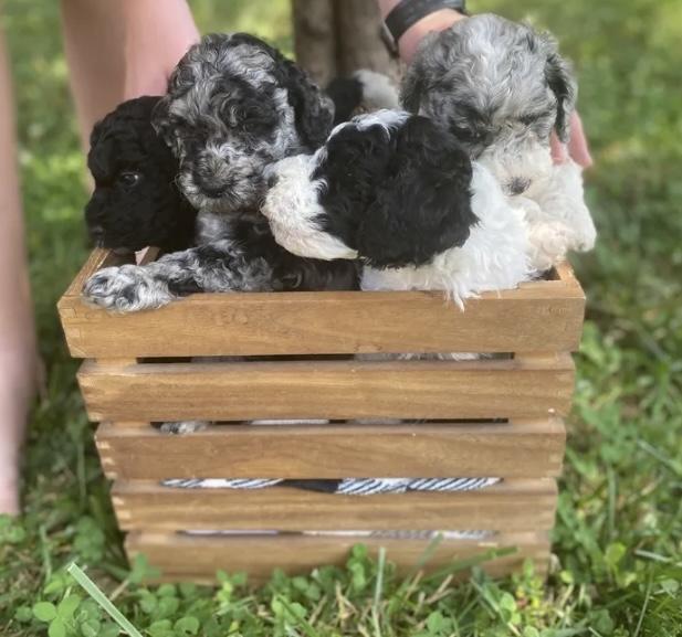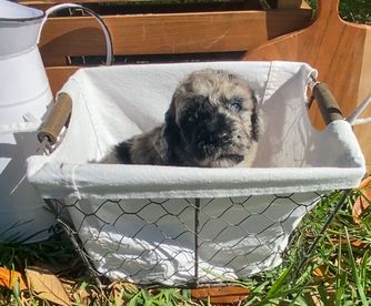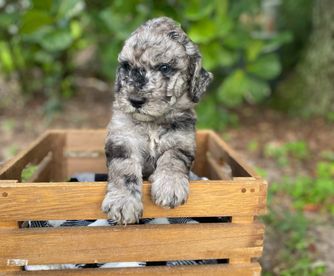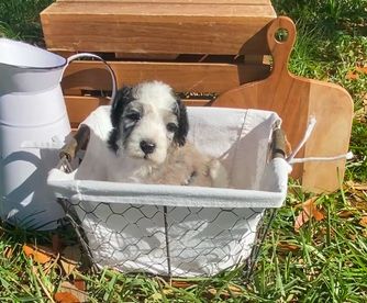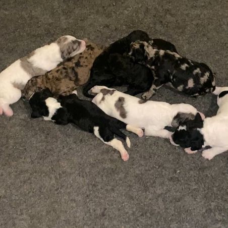 All of our puppies are home raised, and a little pampered with lots of snuggles and focused attention. We want to make sure that all is well with your puppy before they go home with you. We hope to make the transition from our home to your heart a little less stressful for the puppies, so each one is gently introduced to various sights, sounds, smells, and touch. This way, the puppies will be well-adjusted and completely comfortable when they meet their new companion, you! The health of our puppies is very important to us. That’s why we have done detailed health screening on each of our puppies parents through DNA testing. They have each been screened for over 219 genetic conditions and they all have a clean bill of health. This helps to insure that all of their litters are healthy and strong. Which also means that your puppies have the best chance possible for a healthy future and a long life !! The parents are all Breed Certified by Embark and they are each CKC registered. This gives you the confidence that your puppy is from healthy bloodlines & never inbred. DNA testing tells us we can expect our litters to produce some highly sought after coat colors & patterns. Our Golden Sheepadoodle are bred to have that “doodle” look with the ever so popular wavy coat or the much desired curly coat. Wether they are the highly sought after Blue Merle, Black & White, Parti, Gray and white, or a pure black Doodle it’s needless to say our Double Doodles are ADORABLE!! Our goal is to produce the most beautiful, healthy, hypoallergenic, doodles possible. We are raising puppies that will be snuggly, happy, and healthy for years to come. We hope you fall in love for life!