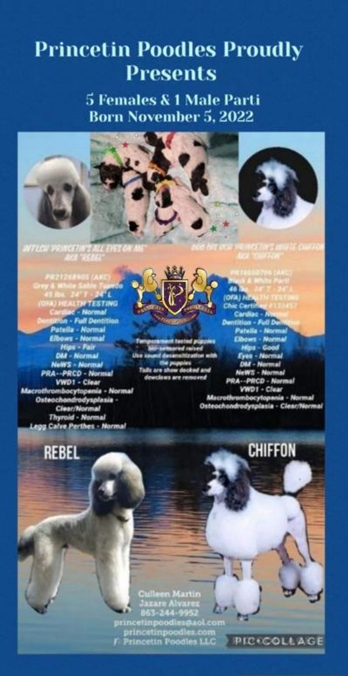 I'm Culleen M., the breeder behind Princetin Poodles located in Arcadia, FL. We show our dogs to demonstrate our passion for sound, ethical breeding. We focus on preserving, protecting & maintaining the standards breeding selectively to improve the breed. We produced 23 Champions and 55 "natural" working Serving Dogs! Raised as part of our family to become part of yours.