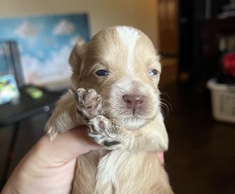 Bliss is such a princess, she loves to be told how beautiful she is. Such a fun little girl always ready to cuddle in my lap. She is amazing dark red parti