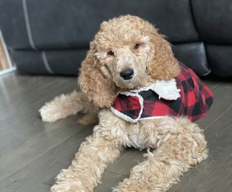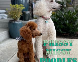 I'm Nichole M., the breeder behind Prissy Missy Poodles located in Washington. We are breeding to improve the lines, health & genetic testing are completed on the dam/sire. Our cream female standard is active, our red male miniature will begin stud service in 2023 after testing is complete.
