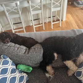 Stanley is a male Portuguese Water Dog. Carefully selected as a great representative of his breed, Beth decided to make him part of their program. Beth has passed Good Dog’s screening process, which involved a review of their breeding practices, environment, and the mental and physical health of their dogs.
