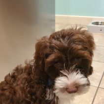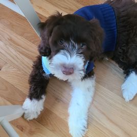 " Cricket" is a female Portuguese Water Dog. Carefully selected as a great representative of her breed, Beth decided to make her part of their program. Beth has passed Good Dog’s screening process, which involved a review of their breeding practices, environment, and the mental and physical health of their dogs.