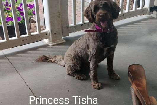 Tisha is a female Portuguese Water Dog. Carefully selected as a great representative of her breed, Beth decided to make her part of their program. Beth has passed Good Dog’s screening process, which involved a review of their breeding practices, environment, and the mental and physical health of their dogs.