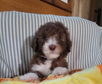 Summer is a female Goldendoodle. Carefully selected as a great representative of her breed, Peggy decided to make her part of their program. Peggy has passed Good Dog’s screening process, which involved a review of their breeding practices, environment, and the mental and physical health of their dogs.