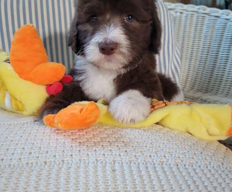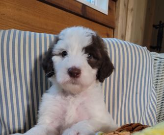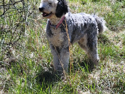 Dixie is a female Sheepadoodle. Carefully selected as a great representative of her breed, Peggy decided to make her part of their program. Peggy has passed Good Dog’s screening process, which involved a review of their breeding practices, environment, and the mental and physical health of their dogs.