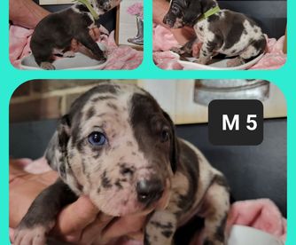 “Health guarantee, AKC, CKC or NALC Registered, 1st vaccines, wormed. Puppy development and behavioral regimen. Started crate and potty training. Deposit amount is Breed specific, and is expected at time of choosing your puppy.”