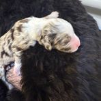 She has the most amazing deep black coat. Her coat feels like velet! It is considered to be a wavy fleece coat that is non-shed.