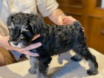 Slater is a male Miniature Schnauzer. Carefully selected as a great representative of his breed, Cynthia decided to make him part of their program. Cynthia has passed Good Dog’s screening process, which involved a review of their breeding practices, environment, and the mental and physical health of their dogs.