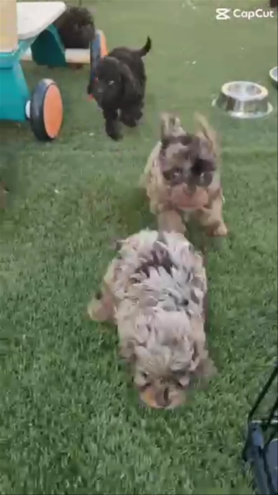 Cavapoo puppies include merle, white, blenheim, red, and apricot. Cockapoo puppies include brown and tan, brown and white, and brown. Goldendoodle puppies include apricot, red, and merle. Poodle puppies include apricot, red, and white. Yorkshire Terrier puppies include gold and black and gold. Colors will vary depending on the parent dogs.