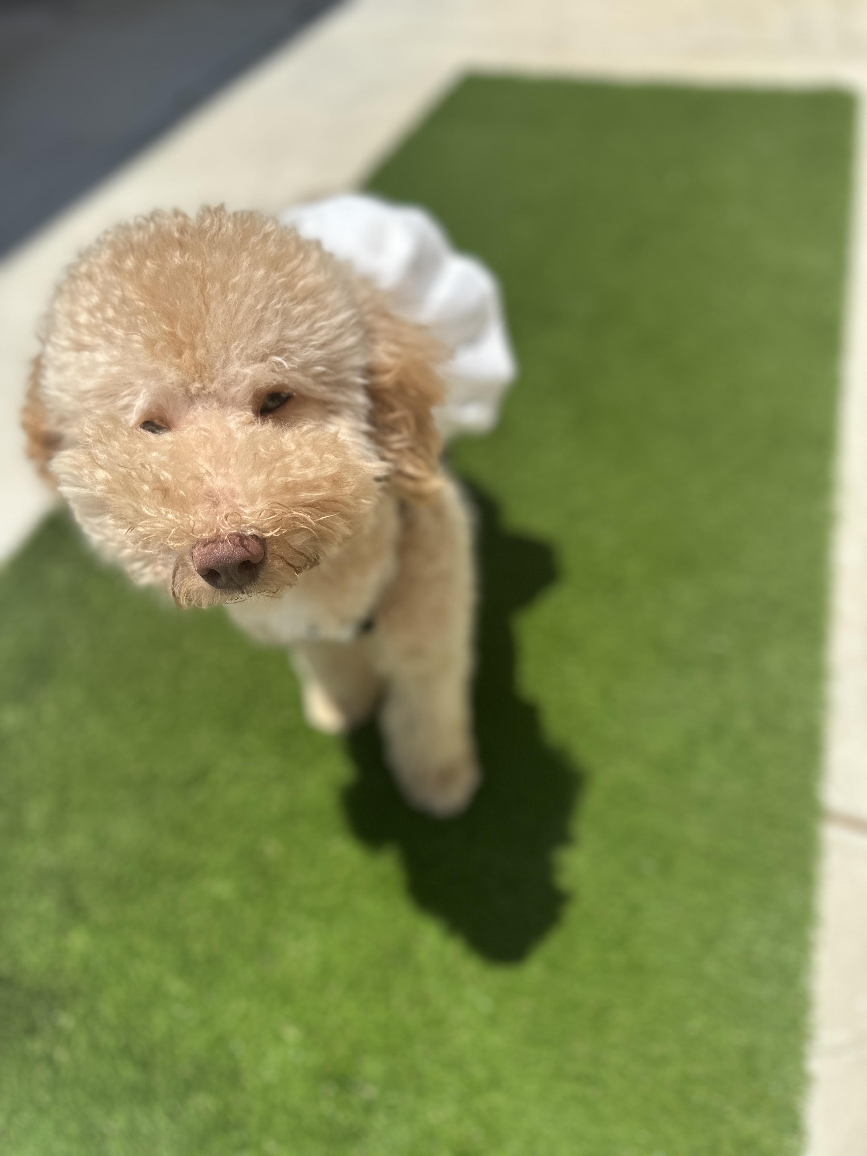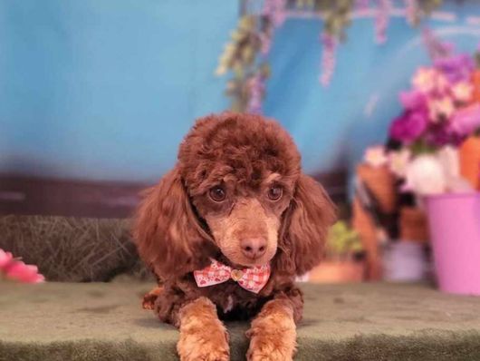 Whiz is a handsome brown and tan poodle known for his playful charm and affectionate nature. He’s a proud dad with strong genetics, a calm and friendly demeanor, and a smart, loyal personality that shines through in his pups.