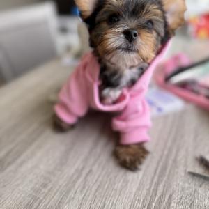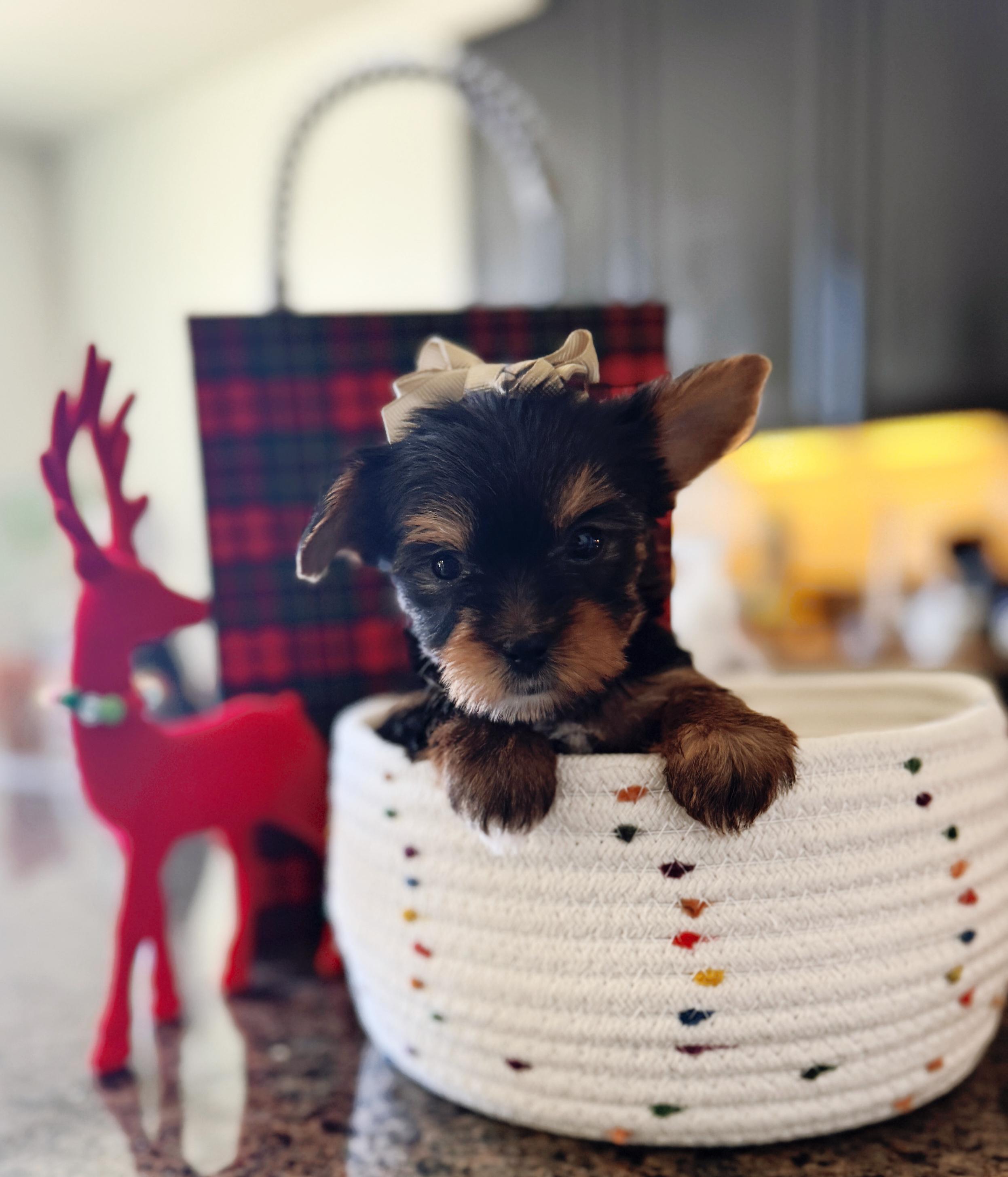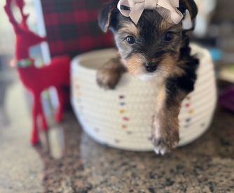 Jewels, the Yorkshire Terrier, is the epitome of love and devotion. With her affectionate personality, she thrives on cuddles and is happiest nestled in the arms of those she loves. Obedient and eager to please, Jewels is a joy to be around, always radiating warmth and charm. Her maternal instincts shine brightly as she adores being a momma to her pups, showering them with care and tenderness. Jewels truly embodies the perfect balance of sweetness and loyalty.
