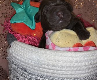 Our puppies include black, chocolate, and yellow. Colors will vary depending on the parent dogs.