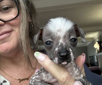 Our Chinese Crested puppies include powderpuff and hairless coat varieties. Coat types may vary depending on the parent dogs.