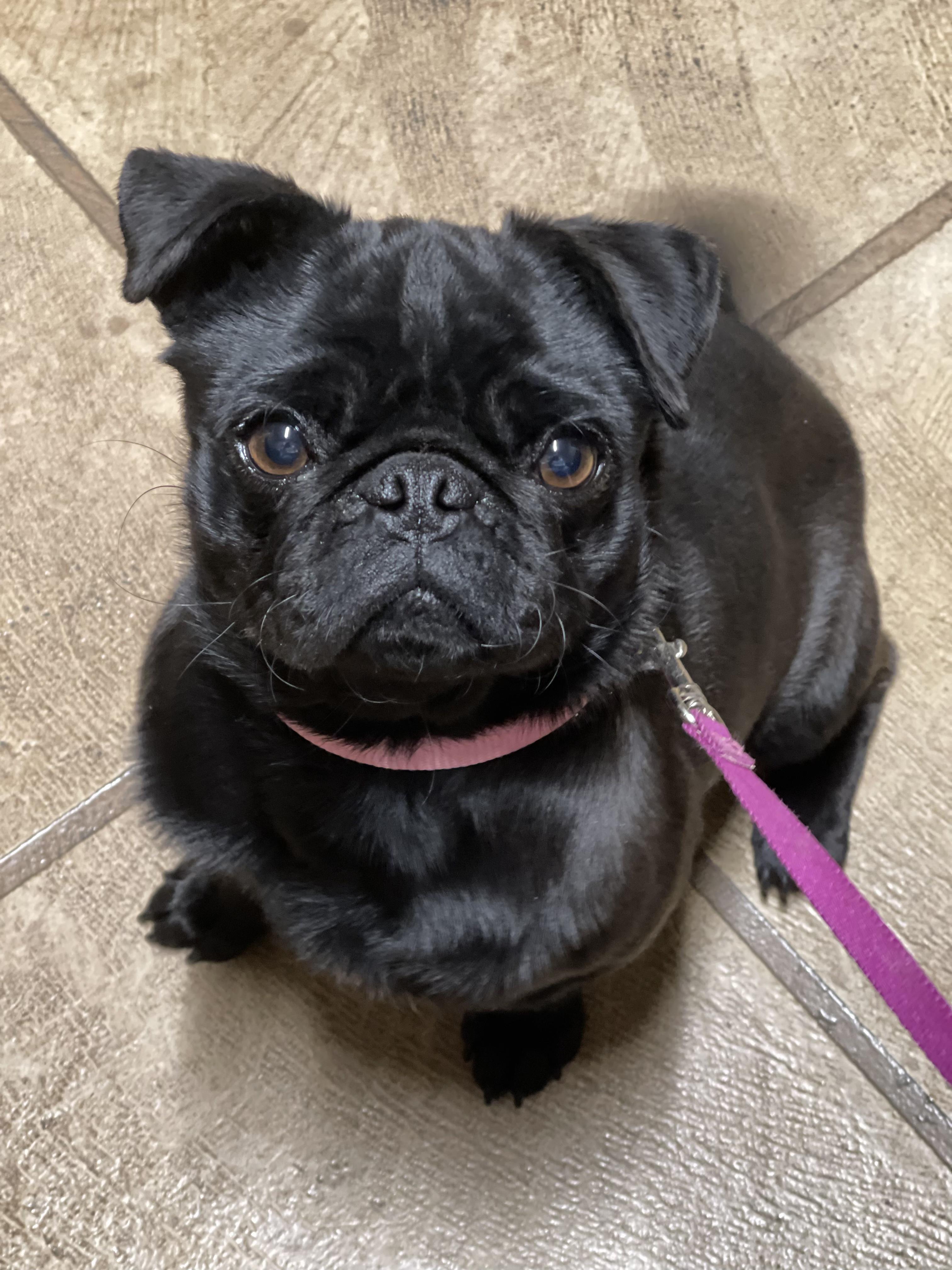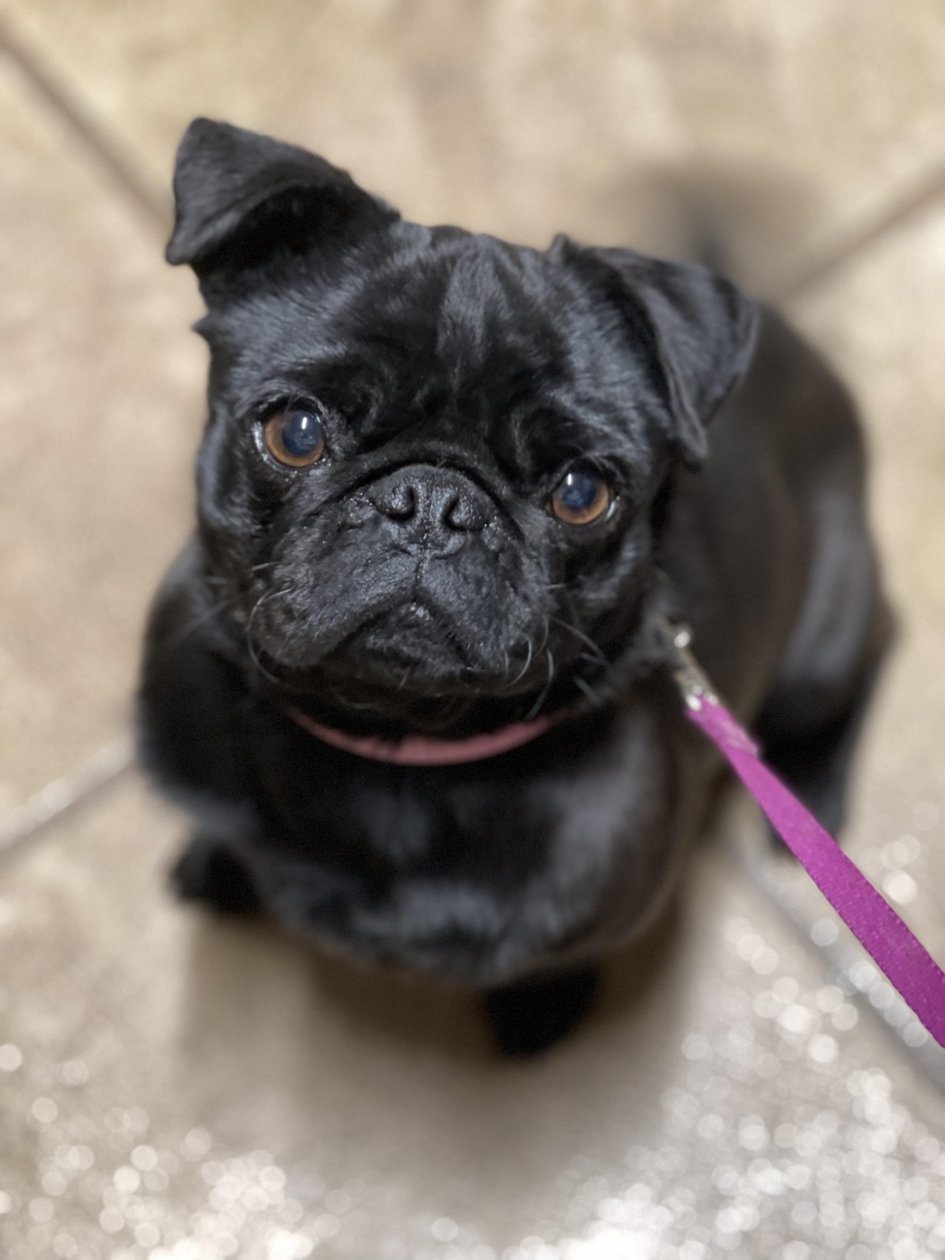 Mackenzie is a female Pug. Carefully selected as a great representative of her breed, Katy decided to make her part of their program. Katy has passed Good Dog’s screening process, which involved a review of their breeding practices, environment, and the mental and physical health of their dogs.