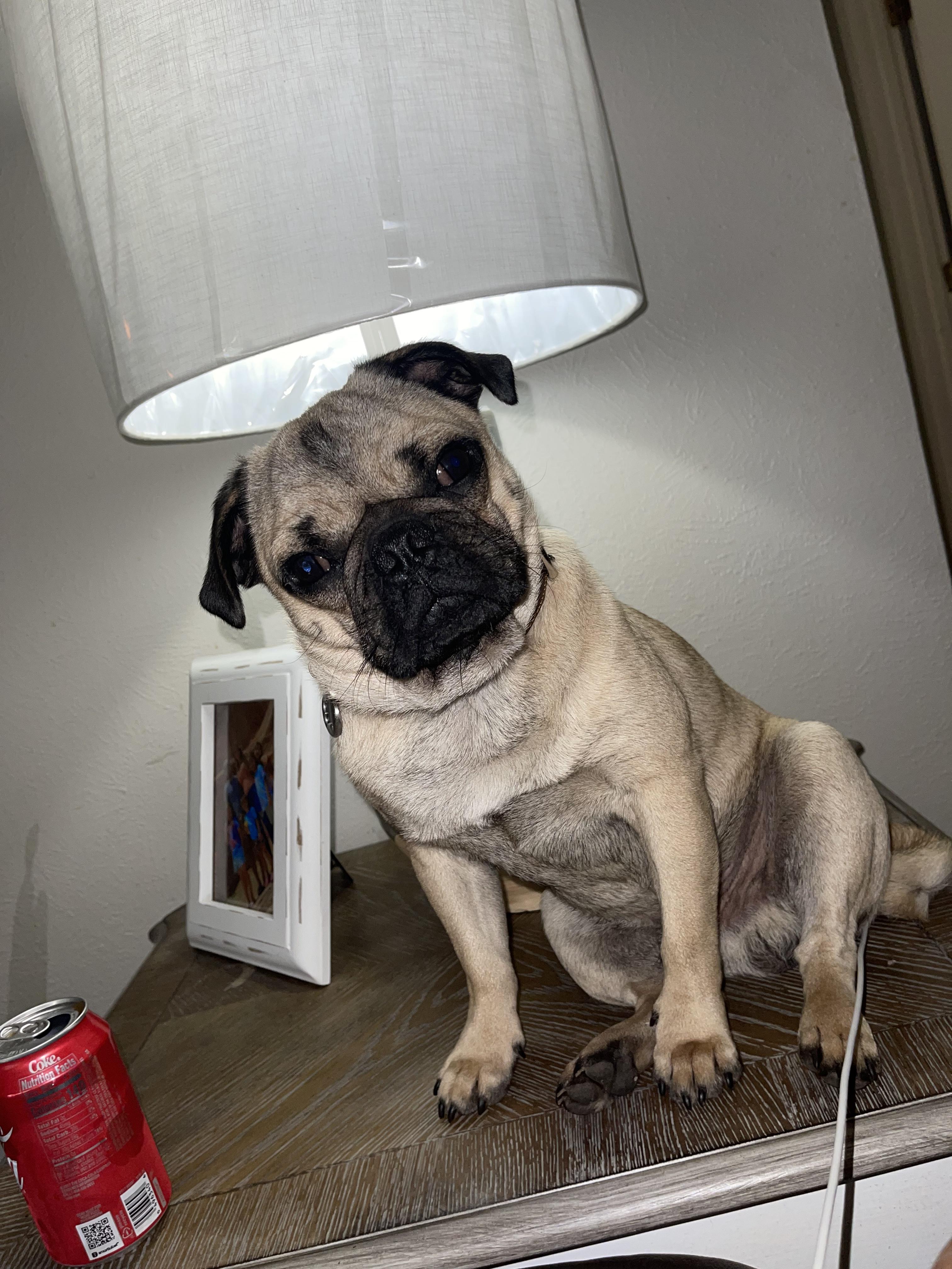 Tito is a male Pug. Carefully selected as a great representative of his breed, Amy decided to make him part of their program. Amy has passed Good Dog’s screening process, which involved a review of their breeding practices, environment, and the mental and physical health of their dogs.