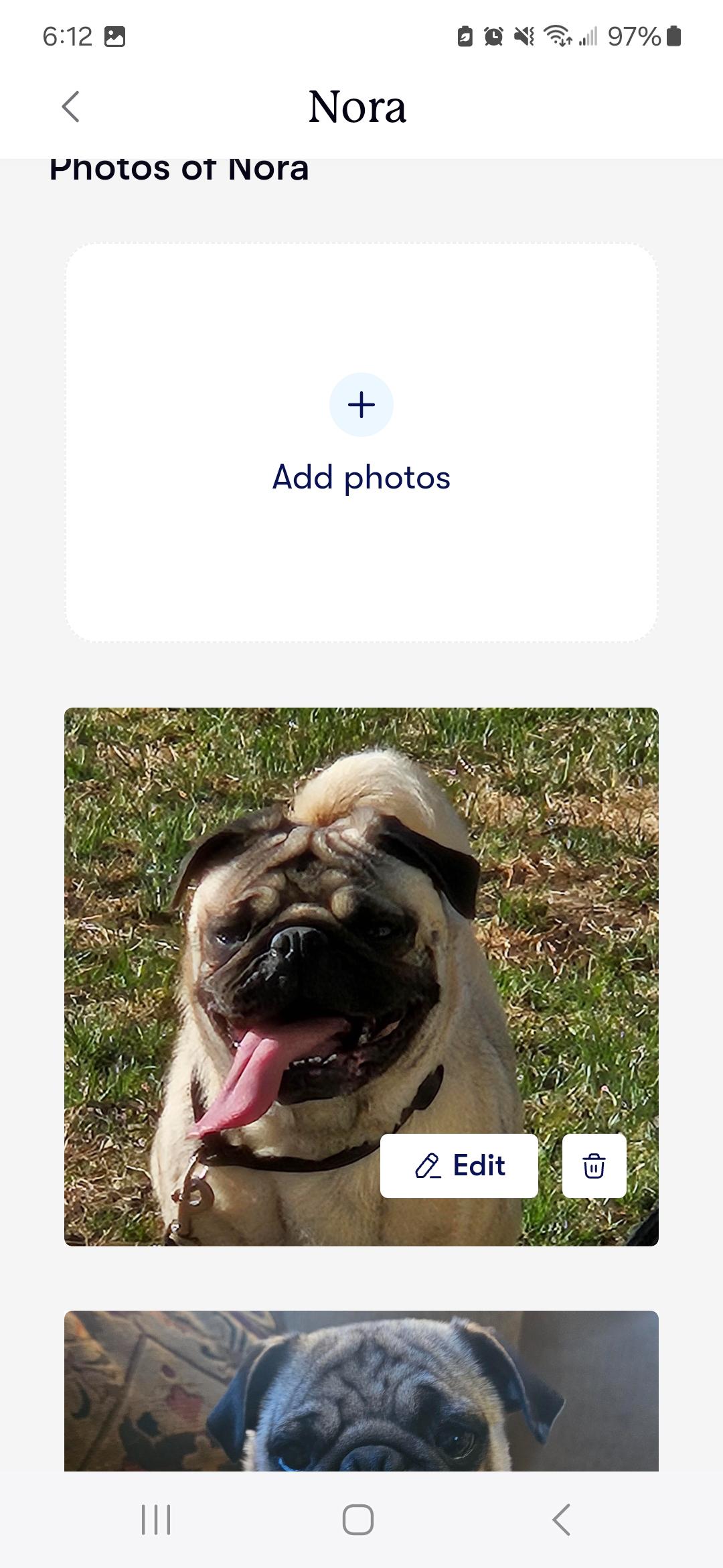 Nora is a female Pug. Carefully selected as a great representative of her breed, Jody decided to make her part of their program. Jody has passed Good Dog’s screening process, which involved a review of their breeding practices, environment, and the mental and physical health of their dogs.