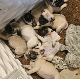 I'm Jody H., the breeder behind Pug Palace Kennel located in Canterbury, CT. My first 2 pugs were rescues. I had found a local breeder who was homing 2 adult pugs. I had no intentions of taking them both home that day but after witnessing the conditions they lived in I couldn't leave 1 behind. I was worried how they would be with my children. I had a newborn baby at home. There was never any reason to worry. They were gentle, loving and tolerant to my 3 young children and we all fell in love!!