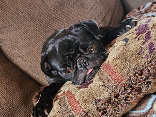 Dede is a female Pug. Carefully selected as a great representative of her breed, Jody decided to make her part of their program. Jody has passed Good Dog’s screening process, which involved a review of their breeding practices, environment, and the mental and physical health of their dogs.