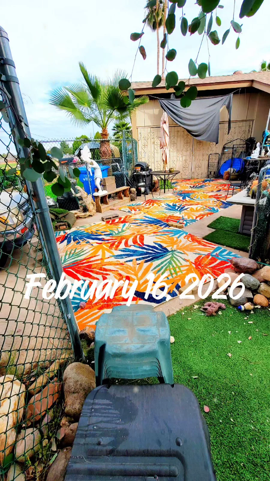 Summer in Phoenix is 115+ hot and concrete can burn Pugs feet. I put 3 polypropylene rugs 8x10 over my driveway securely fenced area I use for my Pugs to exercise outdoors and they potty on faux grass I have installed for them. The new rugs are bold and multicolored. They are very jazzy upbeat, in textures my Pugs and puppies will enjoy. It hoses clean with water and invigorates me when I am working outdoors. This is a happy home diy improvement to please my Pugs and myself. After ordering online and it was delivered yesterday. Only took about 2 hours to cover the curved driveway concrete and rearrange things there.