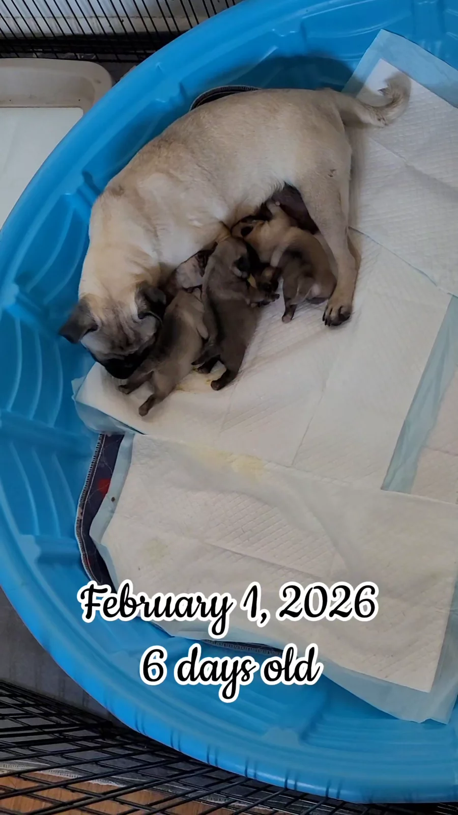 Luna's newborn puppies were transferred from the whelping box to a nursery pool until they are able to climb out of it, at which point I remove the pool and they have access to the entire nursery area floor space to develop mobility.