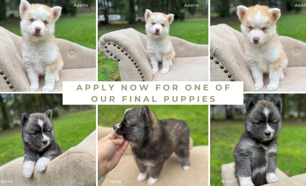 I'm Erica, the breeder behind Puget Sound Pomskies located in Eatonville, WA. Our final litter is a knockout! Absolute pomsky perfection! Ready for their new homes just after the New Year!