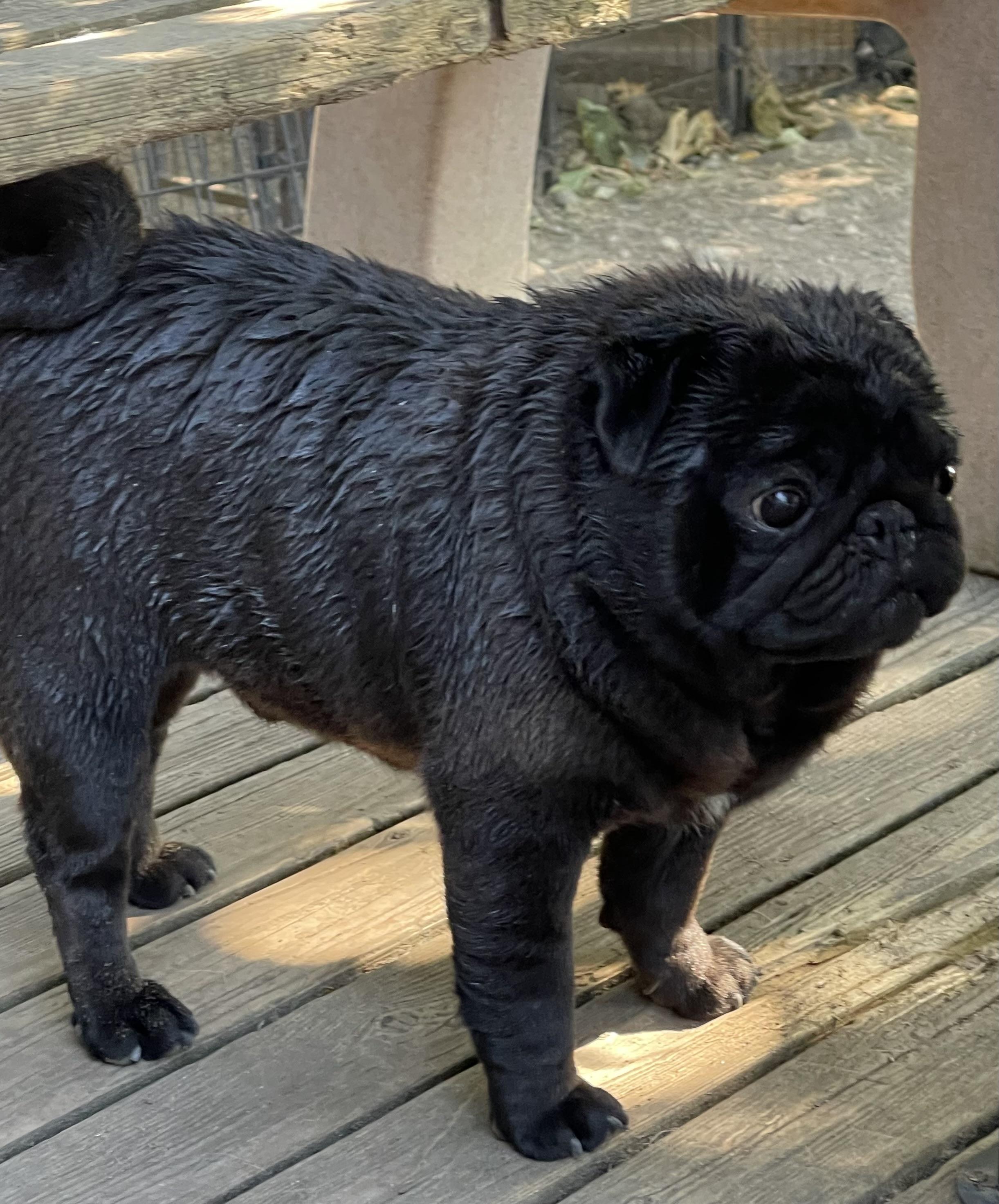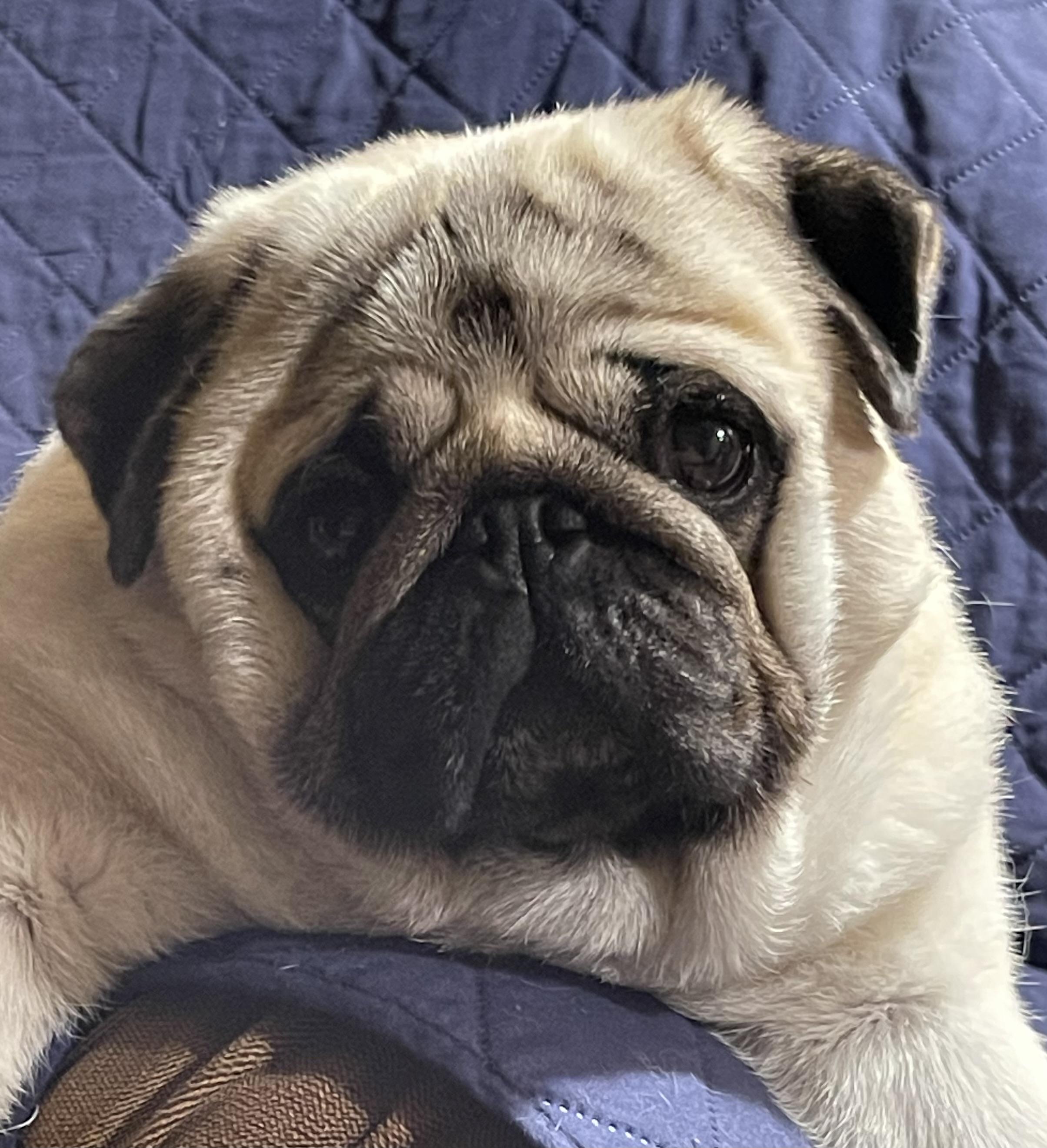 Martin is a male Pug. Carefully selected as a great representative of his breed, Tara decided to make him part of their program. Tara has passed Good Dog’s screening process, which involved a review of their breeding practices, environment, and the mental and physical health of their dogs.