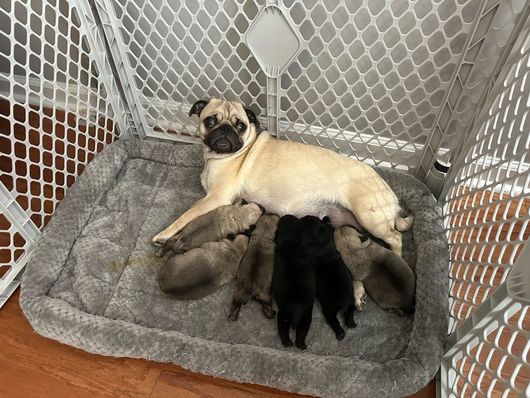 The communication was prompt, transparent, and warm. She answered every question I had, and I was provided with updates, photos, and videos of my pup as he grew. When we arrived to pick him up, I was delighted to see the happy and healthy adult pugs she has and of course, the sweet puppies.