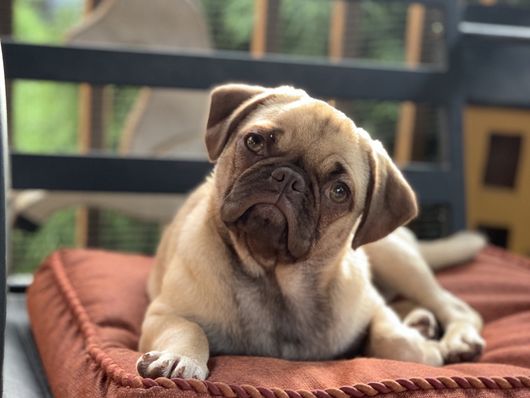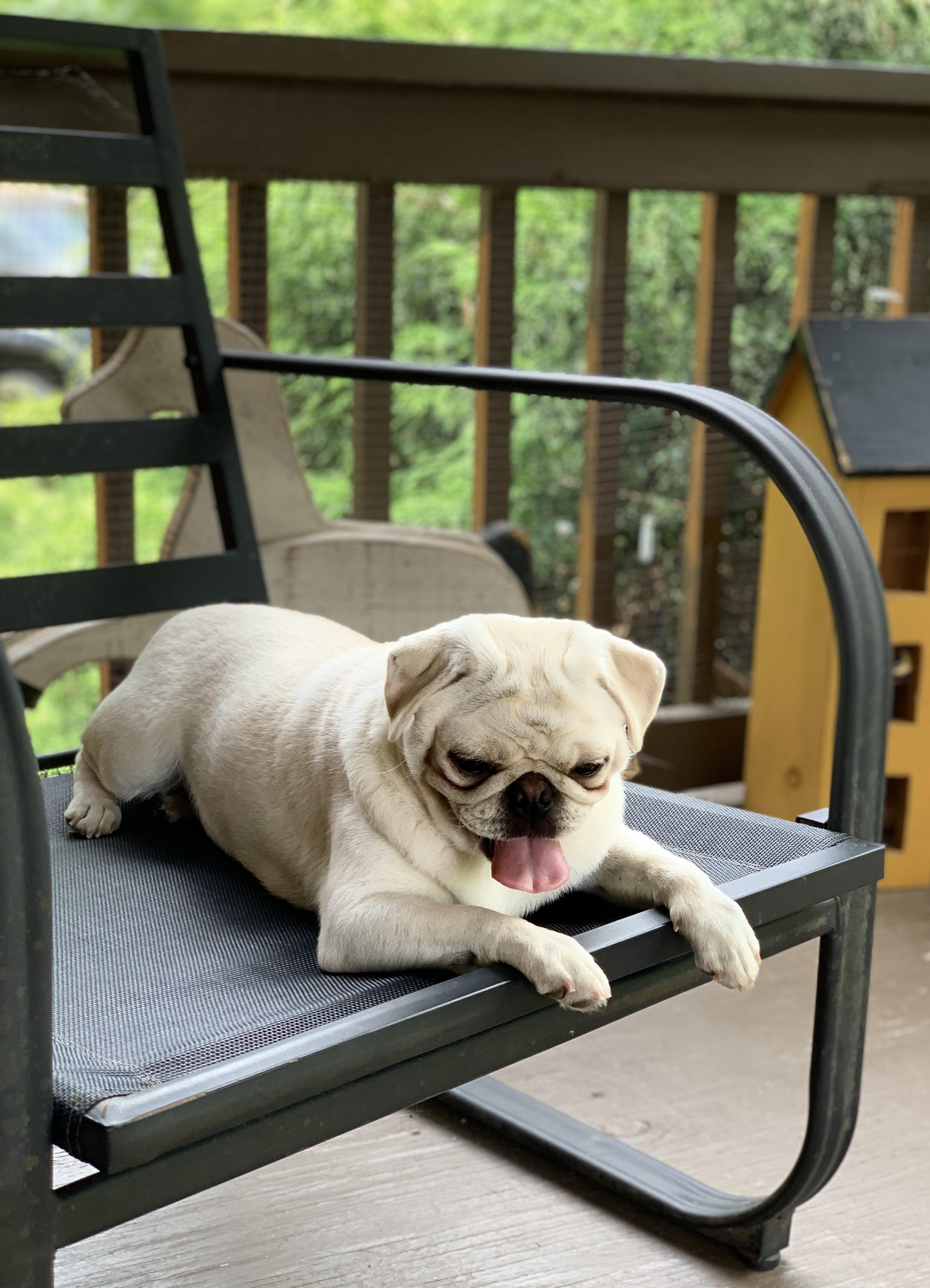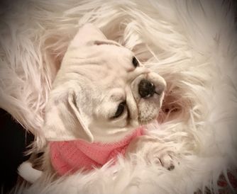 Kuma Bear is a female Pug. Carefully selected as a great representative of her breed, Lisa decided to make her part of their program. Lisa has passed Good Dog’s screening process, which involved a review of their breeding practices, environment, and the mental and physical health of their dogs.