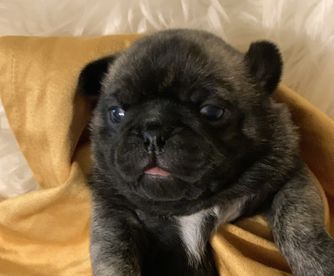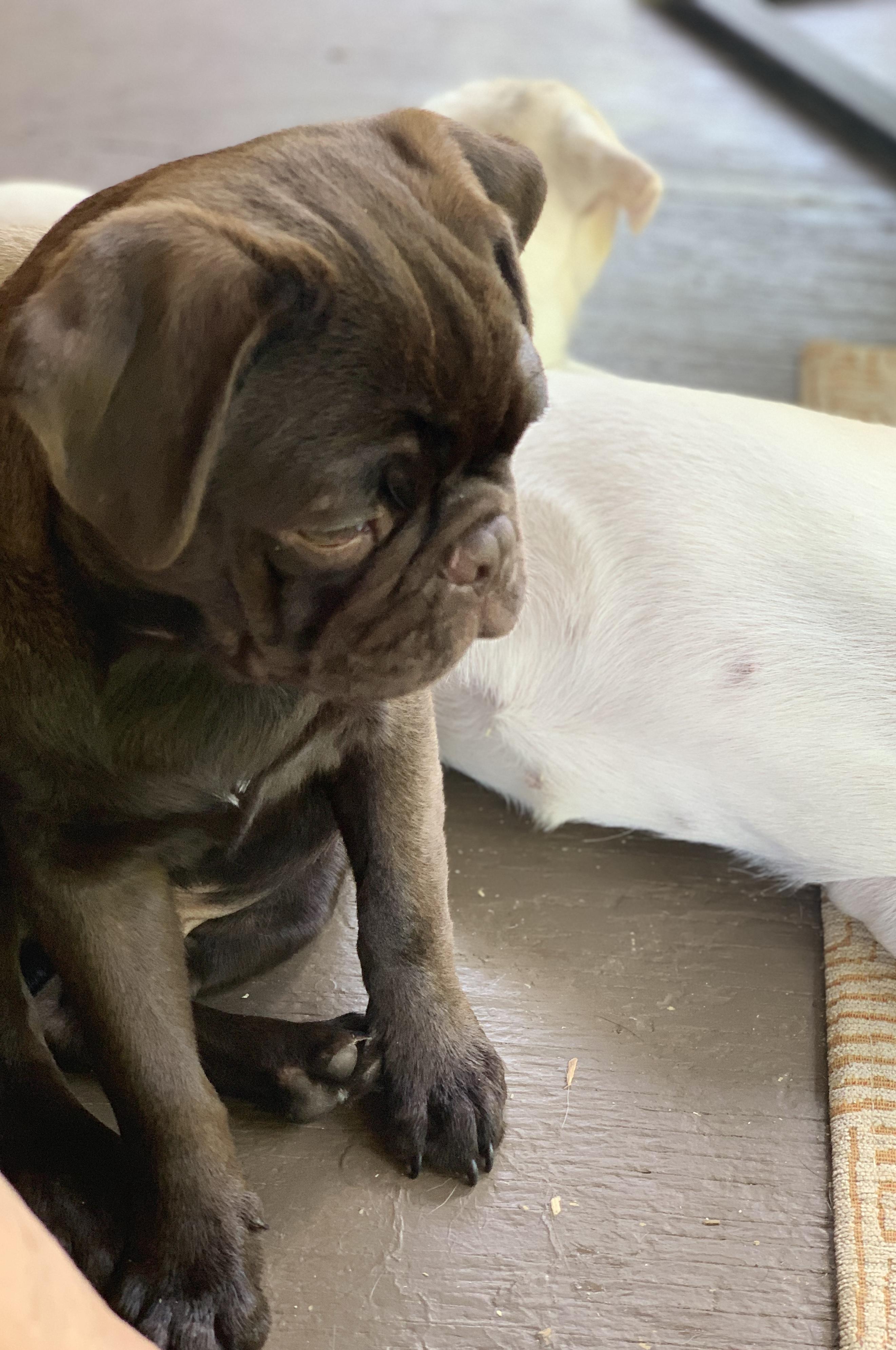 Brindi is a female Pug. Carefully selected as a great representative of her breed, Lisa decided to make her part of their program. Lisa has passed Good Dog’s screening process, which involved a review of their breeding practices, environment, and the mental and physical health of their dogs.