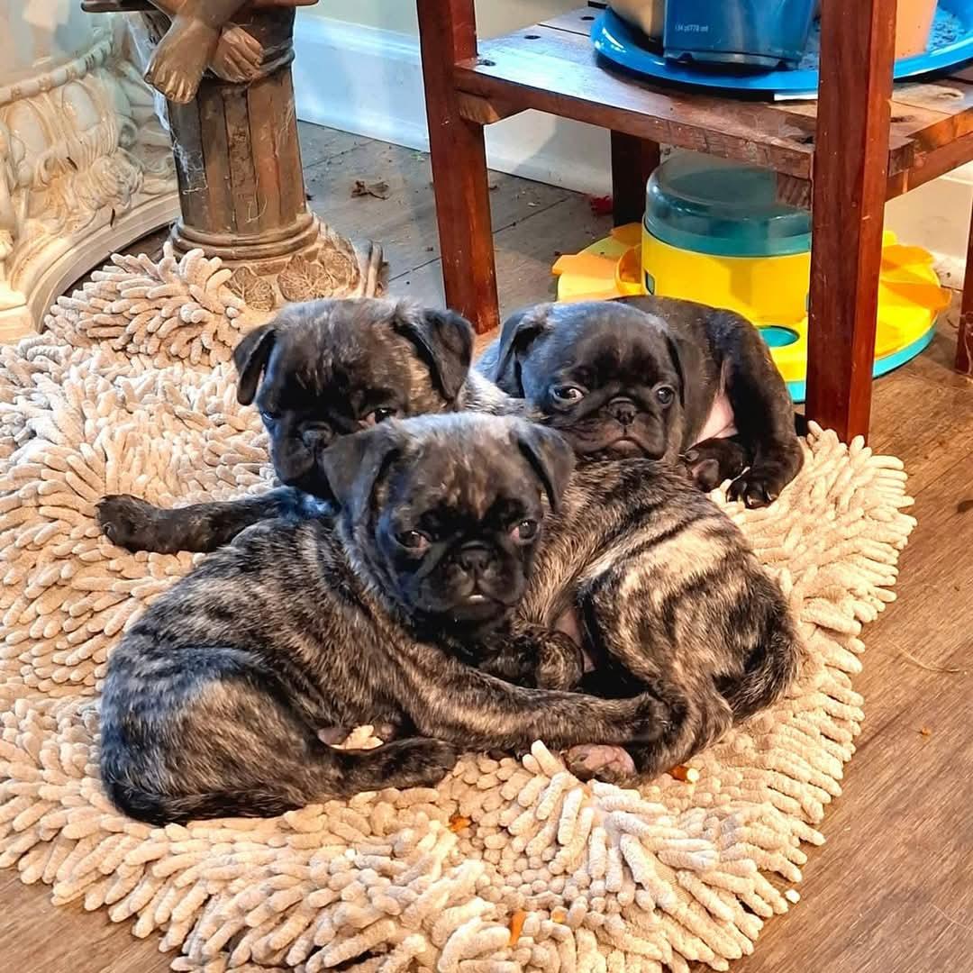 “Price includes vet exam, first set of vaccines, first dose heartworm medication, dewormed. Born 11/11/2024. CKC registered. Two puppies available, both are adorable and beautiful rare Brindle males 10 weeks old. Well socialized. Raised underfoot. Never caged. Fawn Pugs sell for $750 but have already been sold. 2 Brindle Males available also $750. Less than 1% of Pugs worldwide are Brindle. Usual price $2,000- $4,000 depending on area of the US. Our goal is to get them affordably into good homes. Deposit is required to hold puppy. I can provide you with my vets contact information to use as a reference. One year health guarantee included. Registration papers included also. New payment plan offered by Good Dog. I am participating! I want to find the best home for the one puppy that I have left. A male Brindle Pug.”
