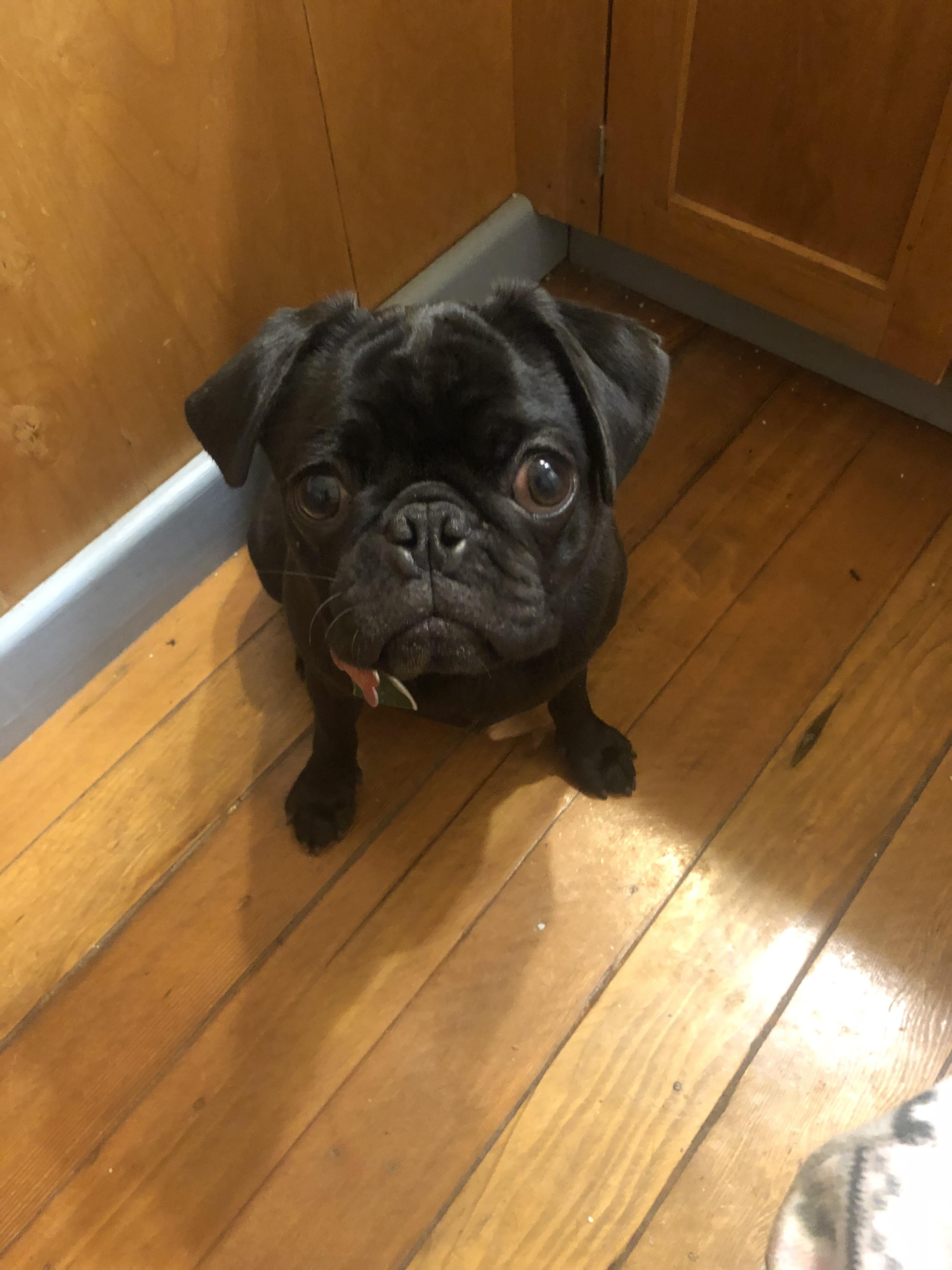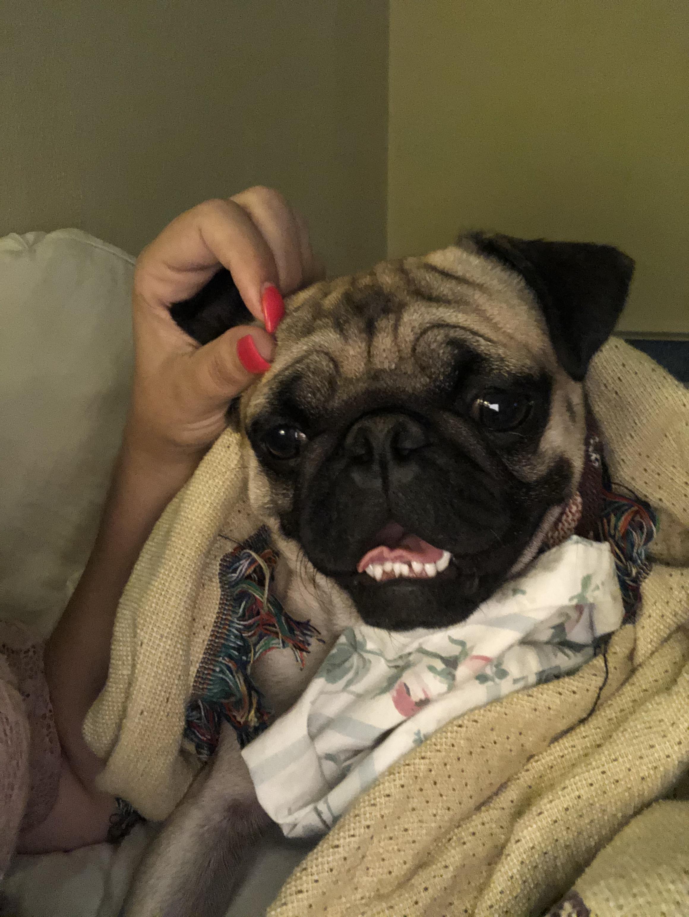Charlie is a male Pug. Carefully selected as a great representative of his breed, Melissa decided to make him part of their program. Melissa has passed Good Dog’s screening process, which involved a review of their breeding practices, environment, and the mental and physical health of their dogs.