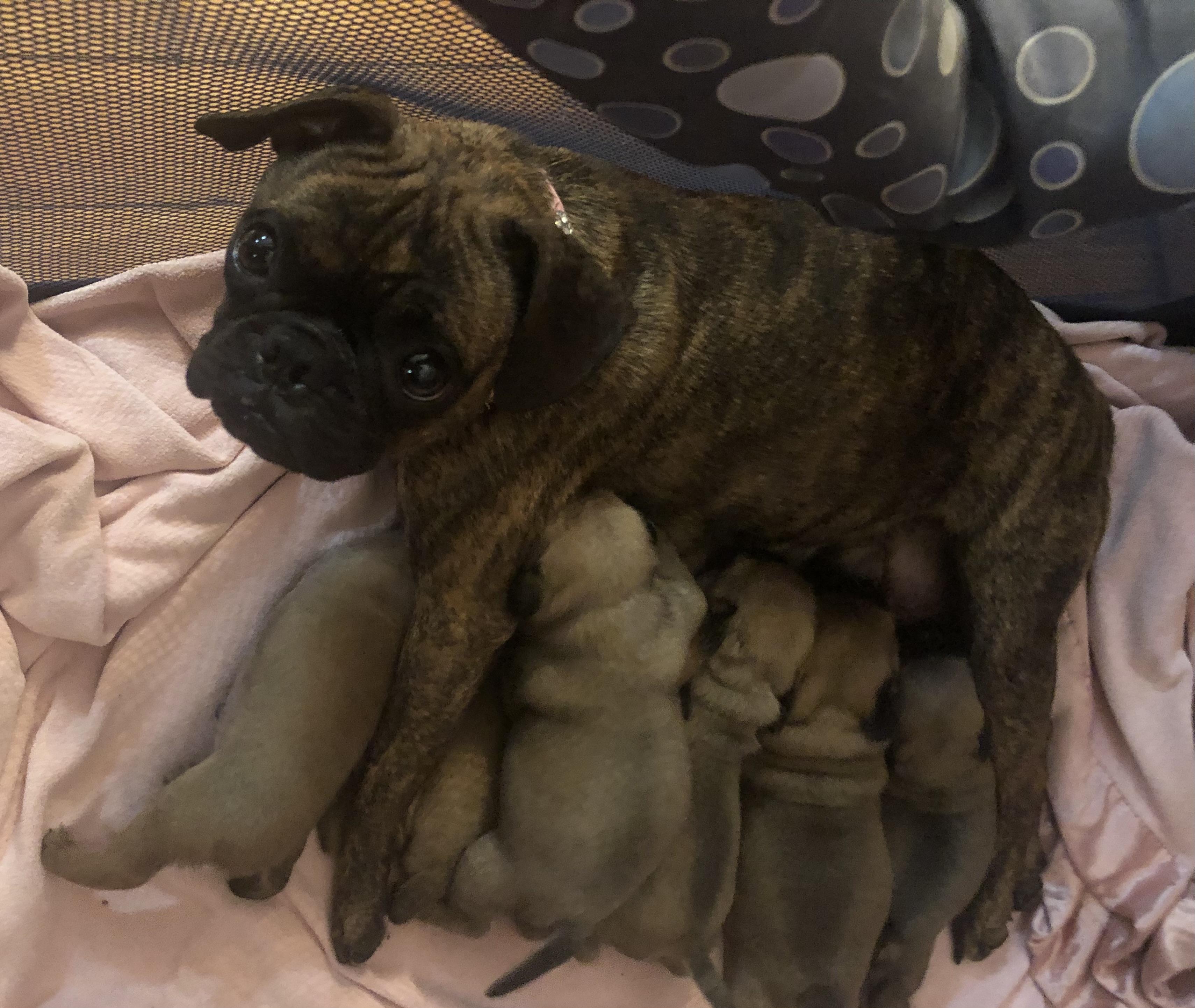 Olive is a female Pug. Carefully selected as a great representative of her breed, Melissa decided to make her part of their program. Melissa has passed Good Dog’s screening process, which involved a review of their breeding practices, environment, and the mental and physical health of their dogs.