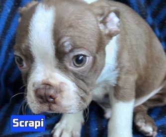 Blue is a handsome brindle and white Boston Terrier boy with a sweet and affectionate personality. He’s intelligent, eager to please, and always ready to share love with everyone he meets. Blue has a friendly temperament that makes him a joy to be around, whether he’s playing or simply relaxing at your side.