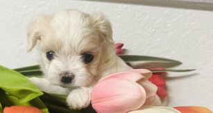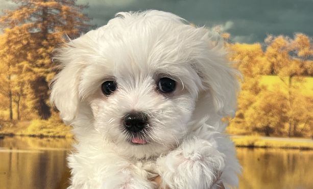 Maltese puppies are white and lemon. Colors will vary depending on the parent dogs.