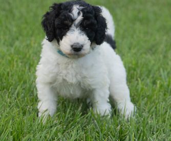 Our Bernedoodle puppies include sable, black and white, tri-color, and phantom. French Bulldog puppies include liver, tricolors, black and tan, and blue. Lhasa Apso puppies include black and tan and white. Colors will vary depending on the parent dogs.