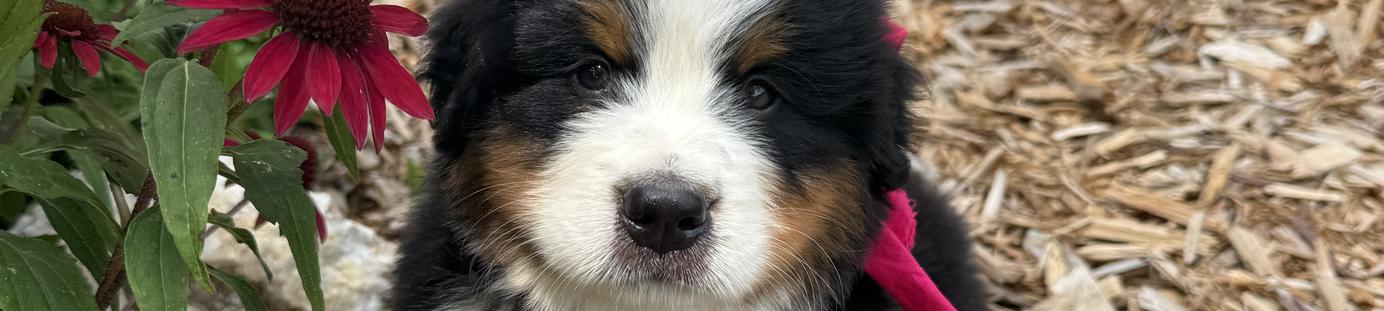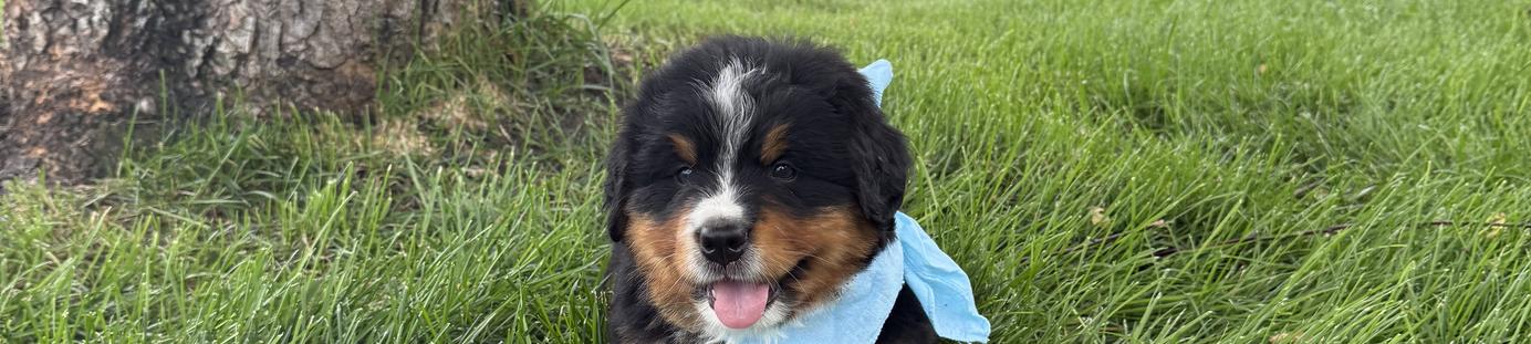 We have been Bernese Mountain Dog breeders since 2011. Our first Berner, Zoe, came into our lives unexpectedly. From that point on, we knew they were the best dogs ever ;) They instantly became a ‘part of the family’ with the unconditional love and affection they always bring. They are gentle giants and make great family dogs. Our newest female, Mika was imported from Poland in 2022 to ensure that we have fresh bloodlines in the midwest. She has excellent testing and the best personality.
