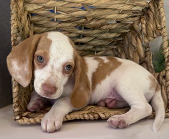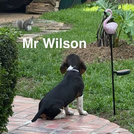 Meet Ranger he is a gorgeous male lemon and white beagle. He has a very sweet personality, and is always eager to please. Ranger has a gentle and playful temperament. He enjoys long walks, with his nose to the ground seeing what he can sniff out, and sitting in the shade. Ranger is a great representation of the beagle breed.