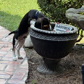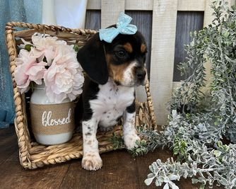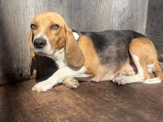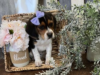 Our beautiful Little Bit is a female tricolored beagle. This girl is so pretty and such a loving little beagle. Little bit has a kind and calm temperament. She is a very loyal companion. She represents her breed beautifully.