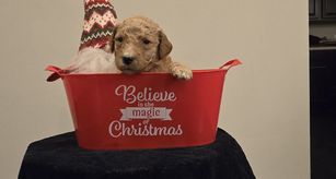 Our puppies include caramel cream, caramel, apricot, and black. Colors will vary depending on the parent dogs.