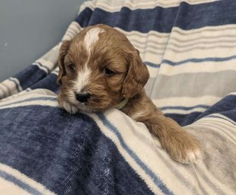 Puppy prices include a $200 non-refundable deposit and between $1,295 - $1,800 final payment, before taxes & fees.