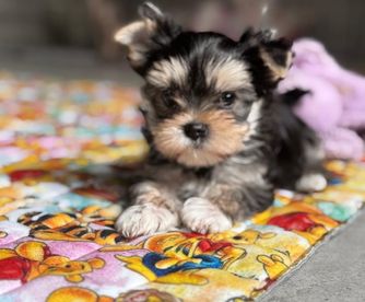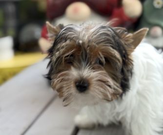 Our Biewer Terrier puppies are black tan and white. Companion Cross puppies include white and black and tan. Morkie puppies are black and tan. Yorkshire Terrier puppies are black and gold. Colors will vary depending on the parent dogs.