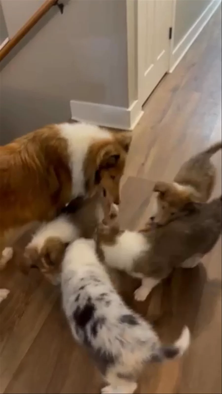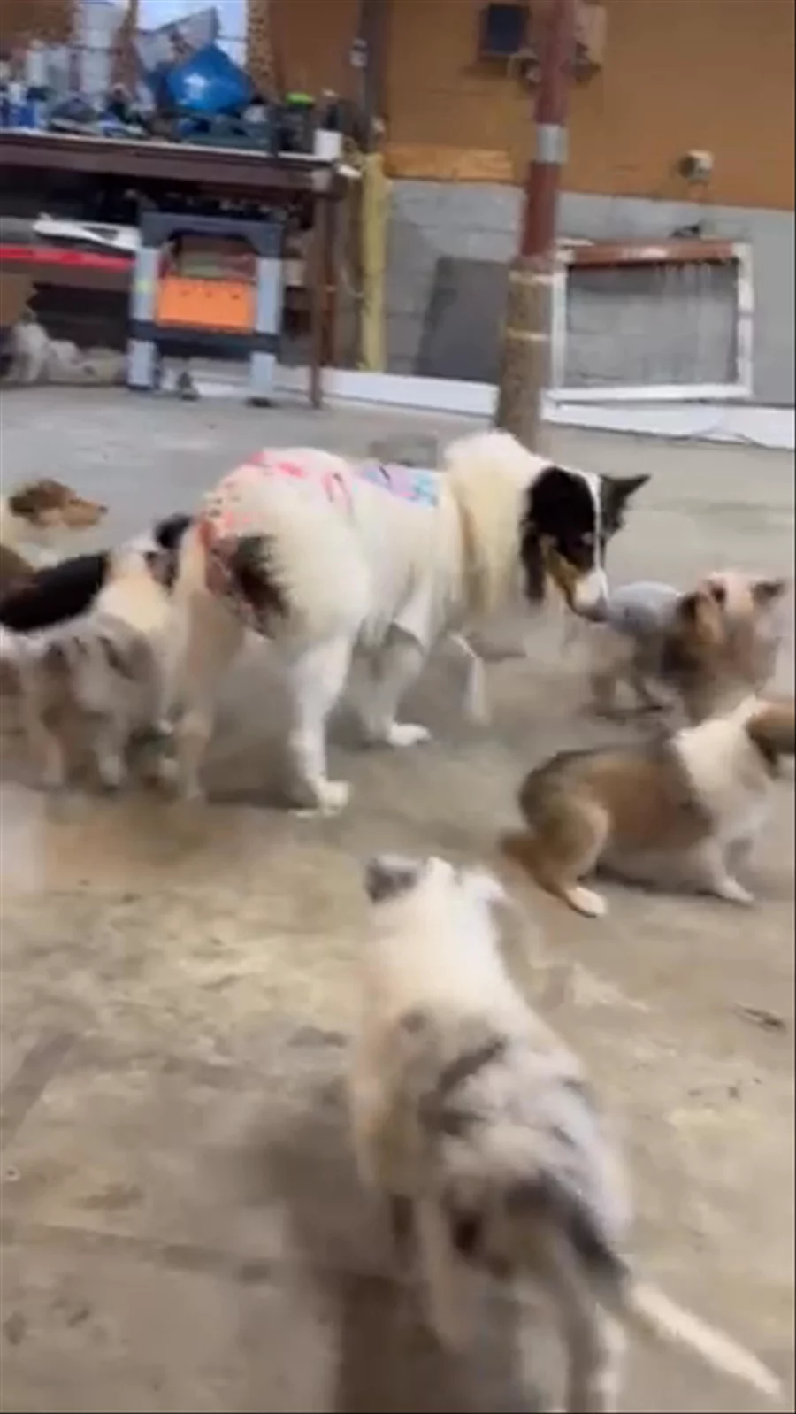 This is what weaning looks like. 😂🤭💙 but loving our little stinkers! Several will get to go to their furever homes this weekend and we are SO excited for their new families! 🥰💙 also, don’t tell the Yorkie she’s not a collie. Mama is her bestest friend and she thinks they’re the same size. 🤦♀️😂