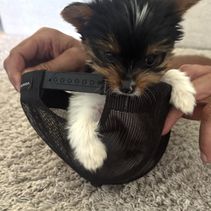 Little dude is a male Yorkshire Terrier. Carefully selected as a great representative of his breed, Amber decided to make him part of their program. Amber has passed Good Dog’s screening process, which involved a review of their breeding practices, environment, and the mental and physical health of their dogs.