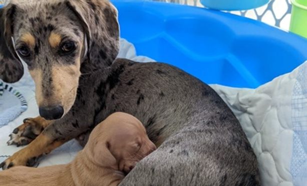 Roscoe is a male Dachshund. Carefully selected as a great representative of his breed, Patty decided to make him part of their program. Patty has passed Good Dog’s screening process, which involved a review of their breeding practices, environment, and the mental and physical health of their dogs.