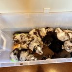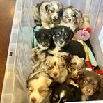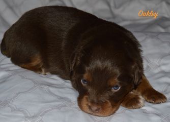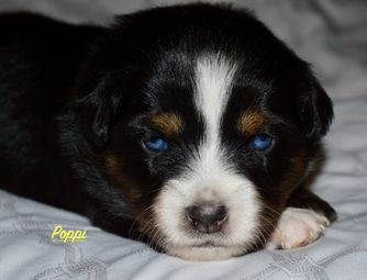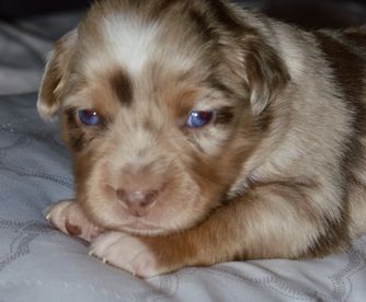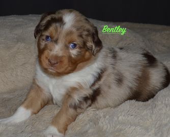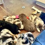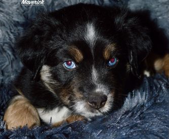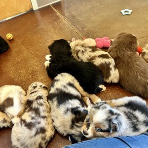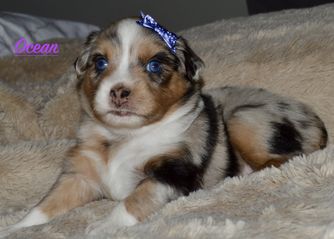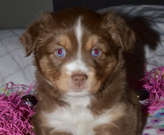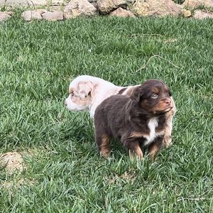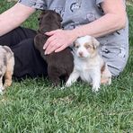 Miniature Australian Shepherd puppies include blue merle, black tri, red tri, and red merle. Colors will vary depending on the parent dogs.