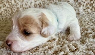 Our Maltipoo puppies include cafe au lait and white. Colors will vary depending on the parent dogs.