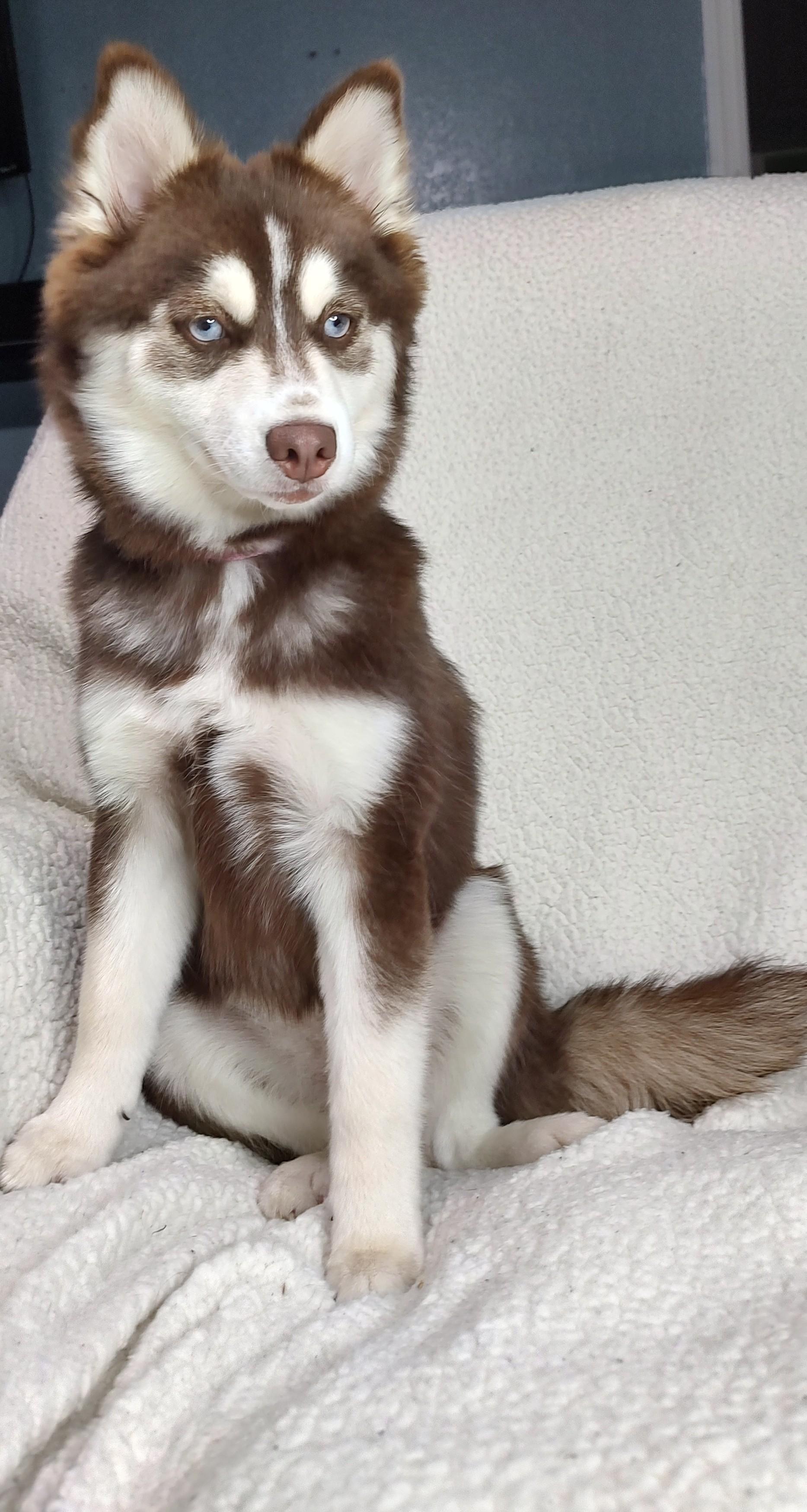 Pomsky puppies include black and white, chocolate, merle, and red and white. Colors will vary depending on the parent dogs.